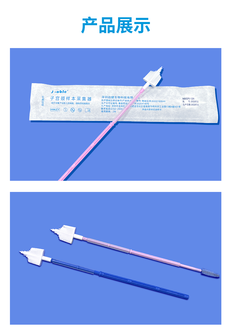 预期用途:一次性细胞学阴道宫颈刷/细胞刷/妇科阴道宫颈刷/细胞刷用于子宫颈抹片或TCT检测