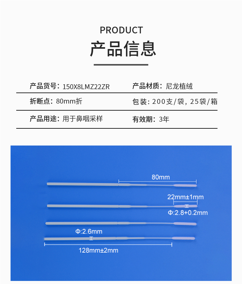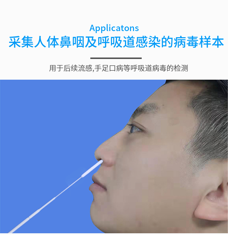 预期用途:采集人体鼻咽部和呼吸道的病毒样本,用于流感、手足口病等呼吸道病毒性疾病