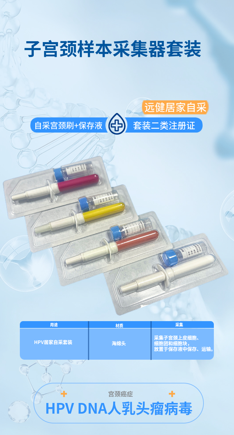 预期用途:居家自采,使用方便. 用于子宫颈样本收集、运输、储存. 妇科HPV居家自采筛查.